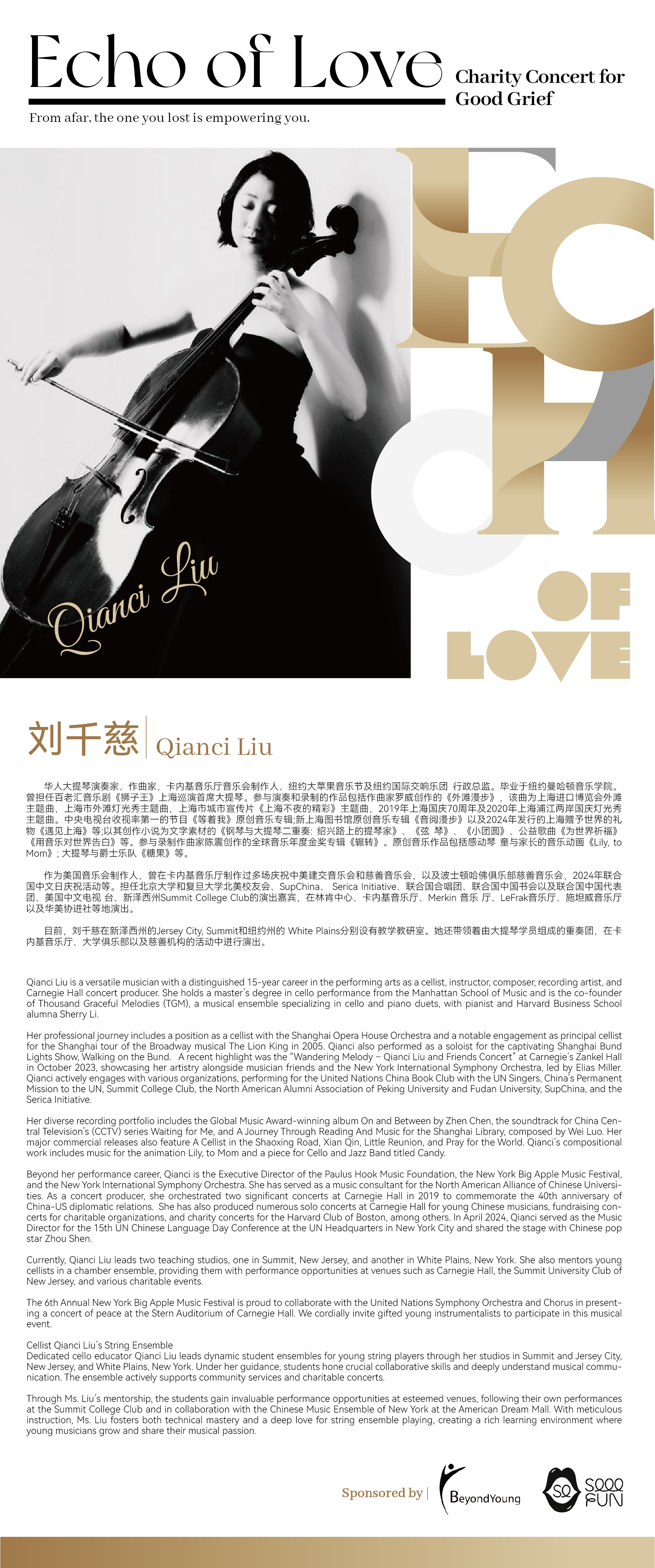 音乐会制作人/大提琴演奏家/歌手(Producer/Cellist/Singer): Qianci Liu