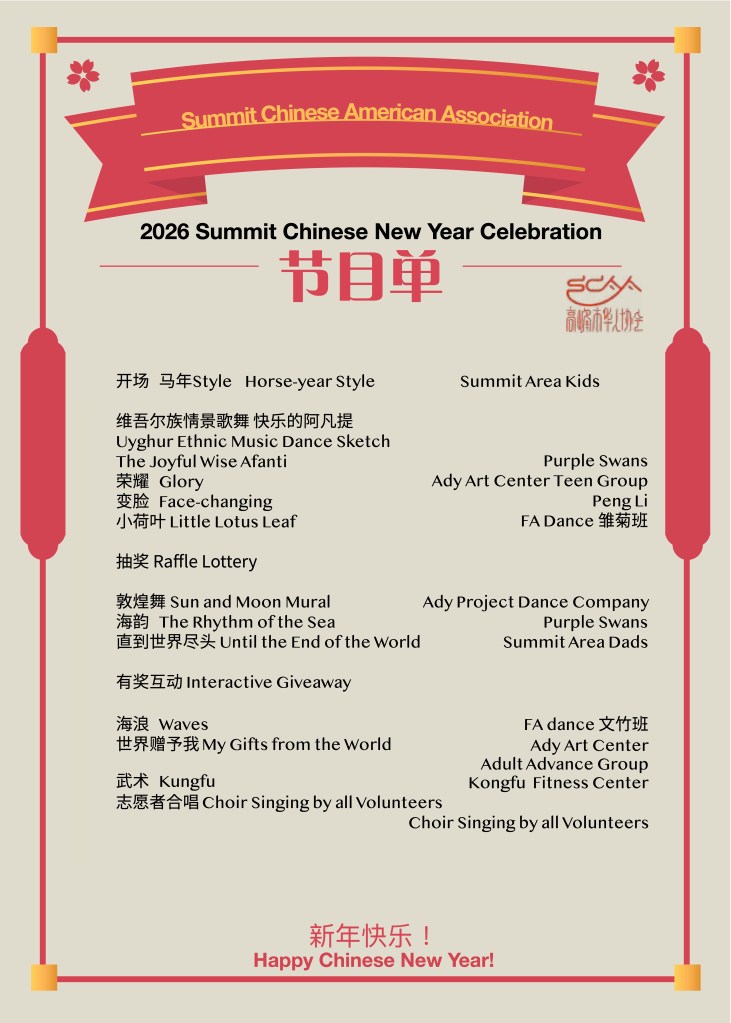 2026 Summit 新春联欢会定于2/1周日下午在Summit 初中举行. 2026是中国农历火马年!